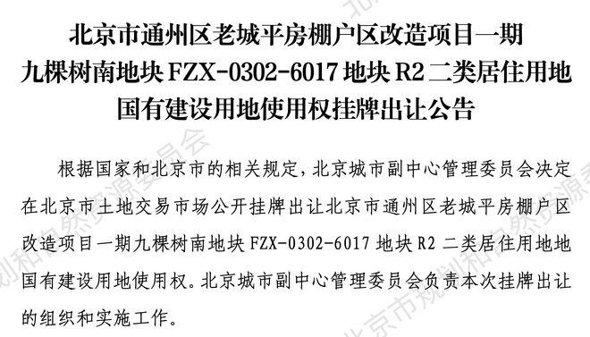 北京金申吾10月24日前往,位于北京市通州区的一块预申请地块转为普通房产。据北京市规划和自然资源委员会发布的消息,决定将北京市通州区旧城平房棚户区改造项目R2二级南一期国有建设权公示出让给北京市土地整治改造。起拍价12.36亿元。竞价申请挂牌转让起始时间为2025年10月24日9:00起,竞价申请截止时间为2025年11月26日17:00起;挂牌竞价起始时间为2025年11月13日9:00起,挂牌竞价截止时间为2025年11月27日15:00起。 据了解,该地块用地面积为24700平方米,上方建筑规模约为54400平方米,容积率为15000平方米。s 2.2,高度限制为45米(部分米)。该地块位于通州区九社树街五路、六路之间。毗邻地铁八通线九社树站。直线距离约700米,步行即可到达。周边有北京通州联通广场、北京中医药大学东直门医院、通州云景公园等。