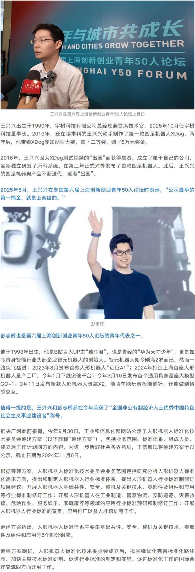 11月24日,工业和信息化部官网发布了《汉诺机器人标准化技术委员会委员名单》:基于产业发展和行业管理需要,相关单位提出组建工业和信息化部汉诺机器人标准化技术委员会的方案。为更好地听取社会各界意见,现将相关委员名单予以公示。公示时间:2025年11月25日-2025年12月24日。公示名单显示,拟聘任玉树科技有限公司王星星、致远创新(上海)科技有限公司彭智慧担任委员会副主任。编辑:蔡玲