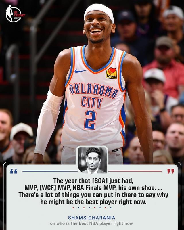 著名记者Shams在今天9月23日的新闻中直播,在节目中说,亚历山大可能是当今联盟中最好的球员。 “今年,SGA收集了所有冠军,MVP,西部决赛MVP和决赛MVP,并推出了自己的签名鞋。结合了所有这些东西,您可能会认为他可能是当今联赛中最好的球员。”