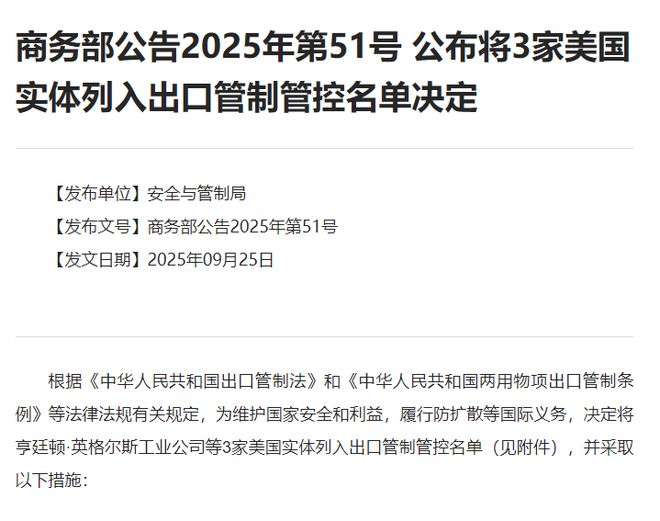 根据商务部的官方网站,按照“中华人民共和国的出口控制法”以及“中国人民共和国的出口控制法规”和其他法律法规,以保护国家安全和利益,并履行国际义务,并履行非实行义务,例如全球管理公司的全球管理公司,以及在中国的全球管理公司,并在中国进行全球管理公司,并在此方面进行,并在中国进行了交易。禁止美国上三个生物中的物品;进行的相关出口活动应立即停止。 2。如果在特殊情况下绝对需要出口,则出口运营商必须向商业部申请。商务部的发言人说,根据“出口控制法”的规定,将国家安全和利益进行地图授予国家安全和利益,并履行国际义务,例如非扩散义务。f中华人民共和国和“向他们的双重使用物品的出口控制监管。任何出口运营商都不应违反上述规定。